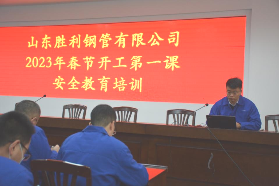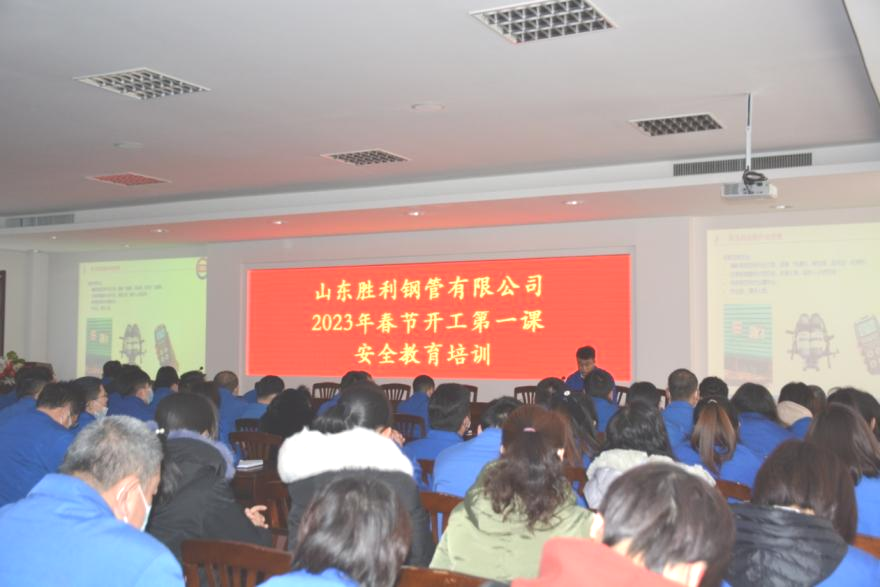?     根据山东省安委会发《关于扎实落实“开工第一课”制度加强企业复工复产期间安全防范的通知》(鲁安办字〔20231号)、淄博市安全生产委员会转发文、淄博市高新区安全生产委员会转发文及公司相关制度要求,2023130日,春节假期后上班伊始,山东胜利钢管有限公司组织全体员工开展2023年春节“开工第一课”安全培训教育活动,公司主要负责人、总经理赵增强为全体员工授课。