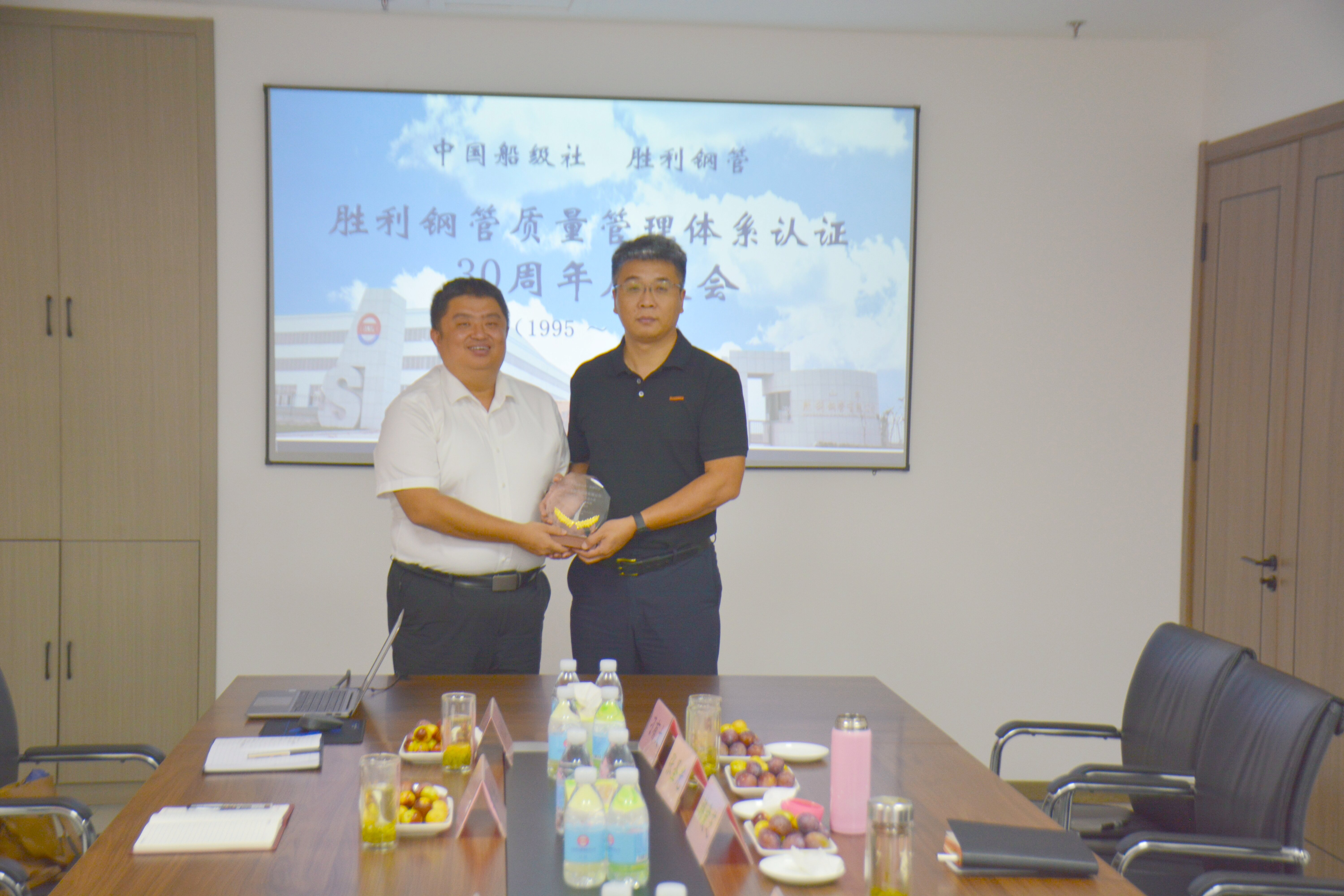 ?  2025 年 8 月 31 日,山东胜利钢管有限公司(以下简称“山东胜利钢管”)与中国船级社质量认证有限公司(以下简称 “中国船级社”)质量管理体系认证合作 30 周年座谈会,在胜管集团会议室隆重举行。本次座谈会以 “质为本 责为魂 效为翼,三十年认证赋能企业长青” 为核心主题, 共忆合作历程,共话未来发展。